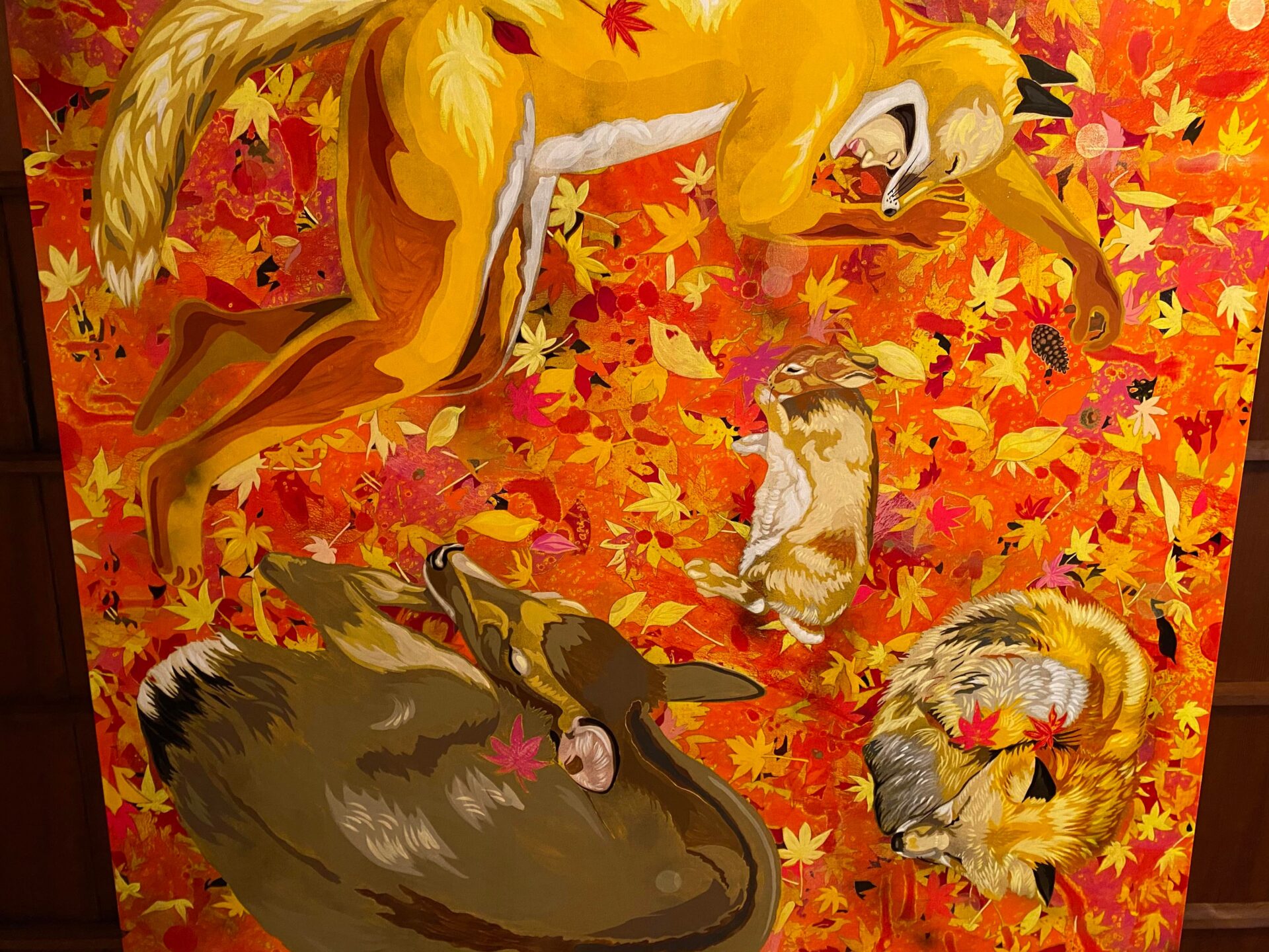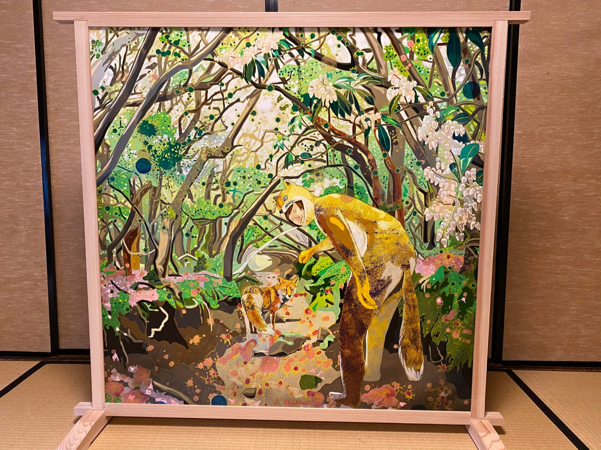 キツネと、キツネ人間に誘われているよう。